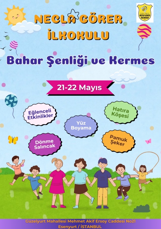 Okulumuzda rengârenk çiçekler gibi neşe saçan bir Bahar Şenliği ve Kermes düzenliyoruz! Hep birlikte eğleneceğimiz, güleceğimiz, lezzetli ikramların tadına varacağımız bu özel günde sizleri de aramızda görmekten büyük mutluluk duyacağız!